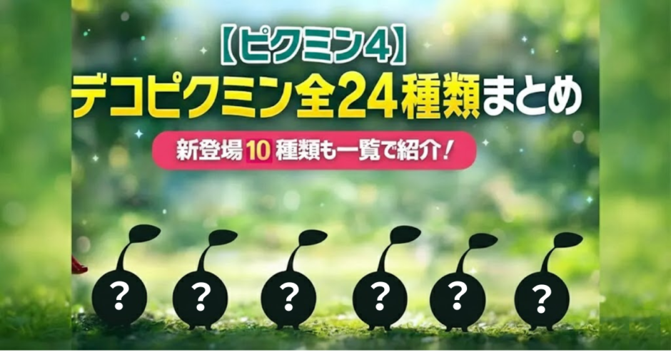 今回は、ピクミン4に登場する 全24種類のデコピクミン をエリアごとにまとめ、さらに新登場デコ10種類も一覧で紹介しました🌱